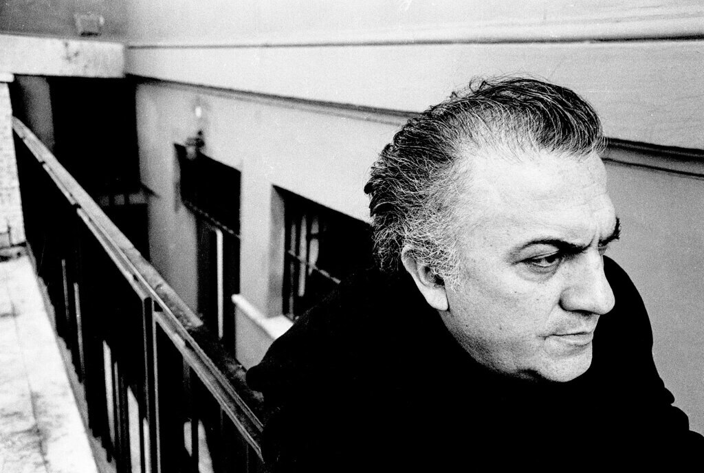Dal canto suo, prima di lanciarsi nel mondo del cinema, Fellini realizza nel 1937 per il cinema Fulgor di Rimini, una serie di caricature di attori famosi e l’anno successivo «La Domenica del Corriere» pubblica le sue prime vignette umoristiche. Trasferitosi nel 1939 a Roma all’età di diciannove anni con la madre e la sorella, si guadagna da vivere come caricaturista (nel 1944 apre nella capitale un negozio, il Funny Face Shop, dove per poche lire disegna le caricature della gente di passaggio) e collabora come vignettista con riviste umoristiche, molto diffuse all’epoca, quali il «420», il «Marc’Aurelio» e il «Travaso». È stata da più parti osservata la corrispondenza in Fellini tra caricatura e concezione del personaggio, oltre all’influenza della comic strip sulla struttura narrativa fortemente frammentata delle sue opere (come ammesso, ad esempio, dallo stesso regista in occasione dell’uscita di Fellini Satyricon, film, a suo avviso, che deve più a Flash Gordon che non agli affreschi di Pompei). Il disegno non rappresenta per Fellini una attività propedeutica alla regia, a differenza di un cineasta come Alfred Hitchcock, che disegna per intero i suoi film, tanto da considerarli finiti prima ancora di girarli. Il disegno è per Fellini, dagli esordi al Libro dei sogni,dalle tavole realizzate da Topor per il Casanova all’incontro con Charles Schultz, fino alla lunga collaborazione con Milo Manara, con cui realizza i graphic novel Viaggio a Tulum e Il viaggio di G. Mastorna, una pulsione creativa ineludibile. Il mondo felliniano nasce sulla carta e finisce col dare vita a un universo di immagini, a un altrove, in cui realtà e sogno si armonizzano: una allucinazione paradossale, una percezione collettiva di oggetti, persone e luoghi assenti e per di più a “occhi spalancati e chiusi”, Eyes Wide Shut, per dirlo alla Kubrick. Il cinema è un sogno che nel suo farsi presente, è qualcosa di reale che ha effetti reali, è qualcosa che turba, che scuote, colpisce ed aumenta le nostre facoltà conoscitive. «Il visionario – secondo Fellini – è l’unico vero realista», “magnifico paradosso” che Oscar Iarussi elegge a incipit del suo prezioso «dizionarietto portabile» del mondo del regista riminese, Amarcord Fellini. L’alfabeto di Federico (il Mulino 2020).